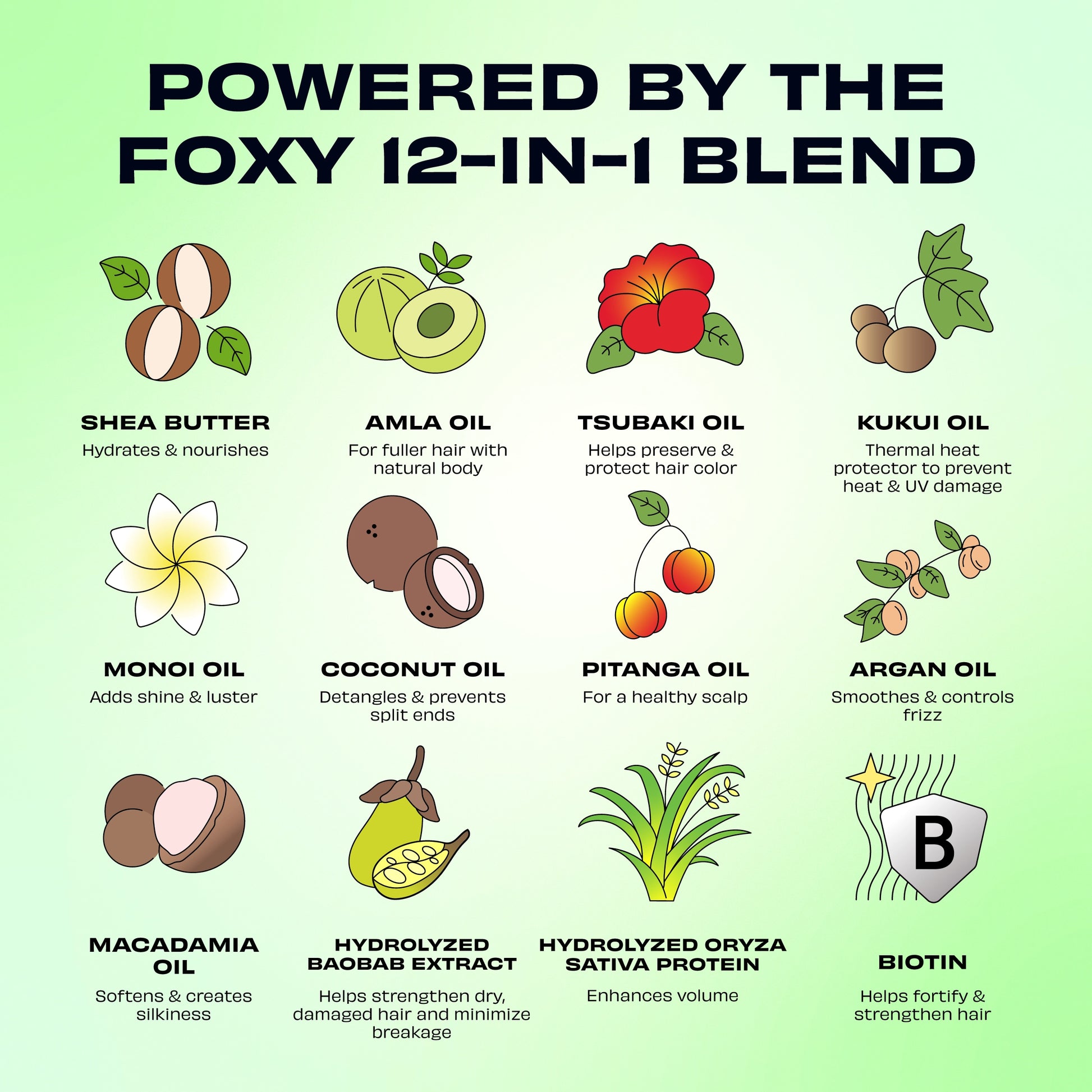 Aqua, Sodium C14-16 Olefin Sulfonate, Cocamidopropyl Hydroxysultaine, Disodium Cocoamphodiacetate, Polyimide-1, Caprylyl Glycol, Phenoxyethanol, Hexylene Glycol, Linoleamidopropyl PG-Dimonium Chloride Phosphate Dimethicone, PEG-150 Pentaerythrityl Tetrastearate, PEG-6 Caprylic/Capric Glycerides, Parfum, Methyl Gluceth-20, Polyquaternium-10, Panthenol, Critic Acid, Disodium EDTA, Propylene Glycol, Biotin, Eugenia Uniflora Fruit Extract, Hydrolyzed Adansonia Digitata Seed Extract, Hydrolyzed Rice Protein, Camellia Japonica Seed Oil, Emblica Officinails (amla) Fruit Extract, Sesamum Indicum (Sesame) Seed Oil, Aleurites Moluccanus Seed Oil, Macademia Ternifolio Seed Oil, Aleurites Moluccanus Seed Oil, Macademia Ternifolio Seed Oil, Cocos Nucifera Oil (organic), Gardenia Tahitensis Flower, Tocopherol, Butyrospermum Parkii Butter, Argania Spinosa Kernel Oil (Oorganic), Hexyl Cinnamal, Lillal, D-Limonene, Coumarin, Linalool