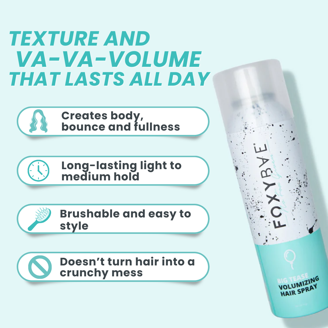Our Big Tease Volumizing Hairspray gives you the body, bounce and fullness that every foxy bae needs! This root-boosting hairspray is infused with beneficial ingredients like biotin and pro-vitamin B5 (panthenol) that work together to strengthen, thicken, and retain your hair's natural moisture and shine. Providing light-to-medium hold, she adds texture, volume, and body to your hair that'll have you looking FOXY anytime, anywhere.