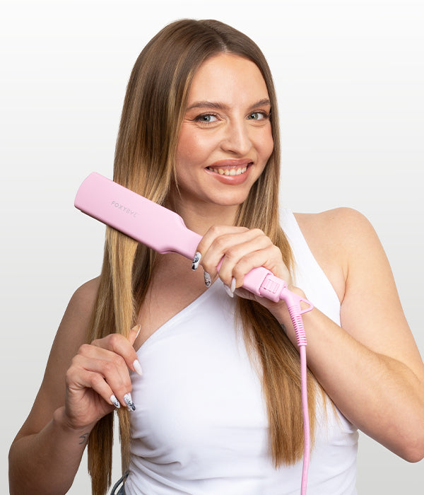 Detangle your hair with your favorite Foxy Brush. Apply Cool AF Heat Protectant to prep and protect, and ensure your hair is completely dry before you start styling. Section your hair with your Foxy alligator clips, and you're ready to style.