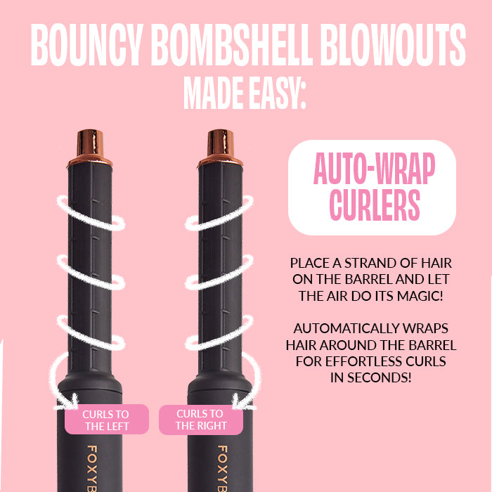 · Auto-Wrap Curlers (1.18”): for the perfect bouncy blowout with loose curls and big volume. Hair is gently auto-wrapped around the barrel for effortless curls in seconds